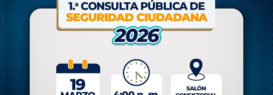 El Comité Provincial se Seguridad Ciudadana Hualgayoc (COPROSEC) realizará, este jueves 19 de marzo, la primera consulta pública de seguridad ciudadana, a partir de las 4:00 p. m., en el Salón Consistorial de la municipalidad de Bambamarca.